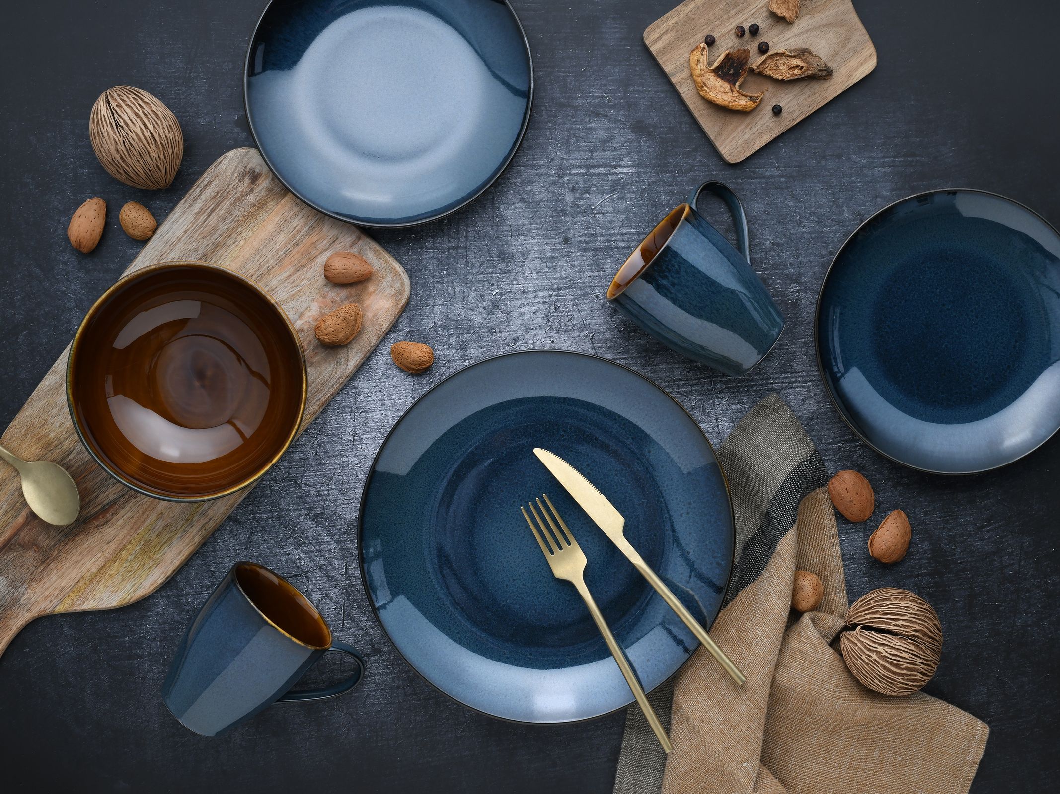 - Leuchtendes Blau als Blickfang auf der Tafel, Terra-Ton als warmer Trend-Akzent